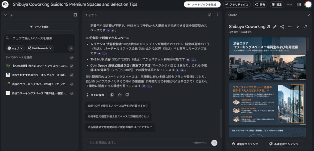筆者は営業資料をChatGPTの画像生成機能やGoogleのNotebookLMを使って作成しています。とくに5枚以上の画像を生成したり日本語入りの画像を生成したりするときは、文字描写が得意なNano Banana Proが搭載されたNotebookLMは重宝しています。