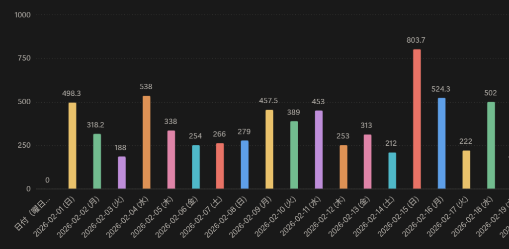 さらに、Notion AIを使えばコーディングの知識がなくても自動でコードを生成し、ChatGPTで出力したエクセルデータをもとに上記の画像のようなグラフを簡単に作成できます。エンジニアではない筆者がこのようなグラフを一人で作れるのはAIなしには考えられません。