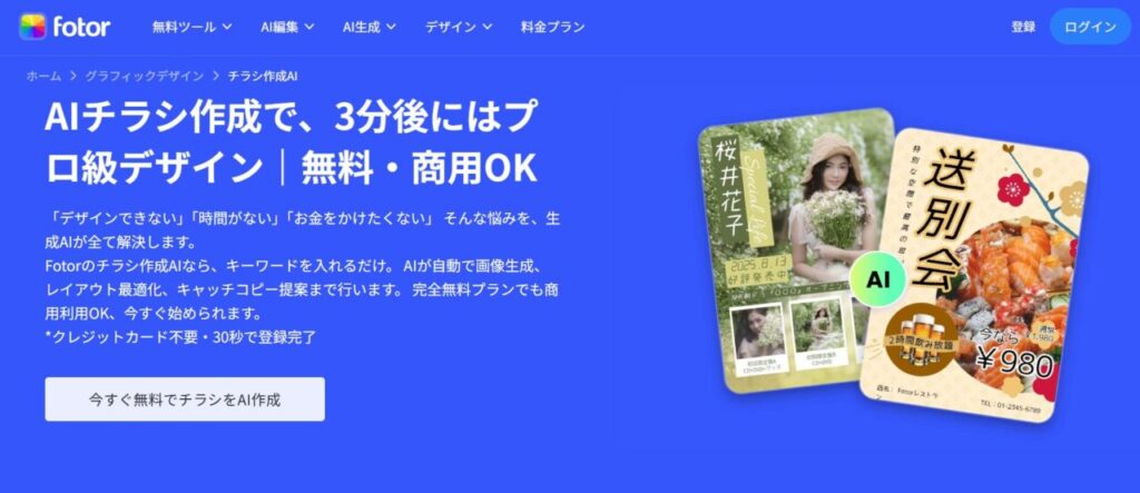 fotorは、デザイン未経験者でも最短3分でプロ級のチラシを自動作成できる便利なサービスです。