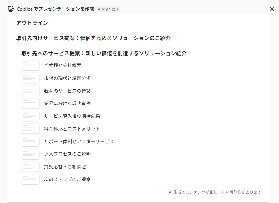 Copilotが生成するスライドの内容は、必ずしも正確とは限りません。