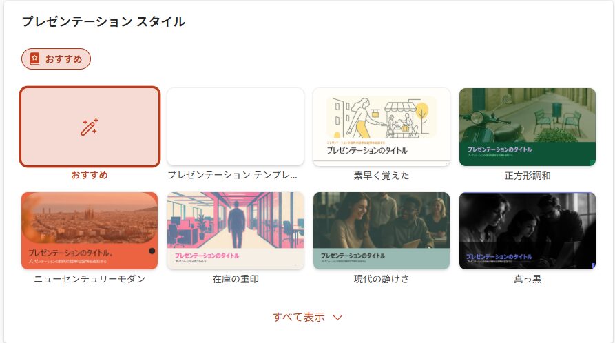 - プロンプトによる新規プレゼンの自動生成