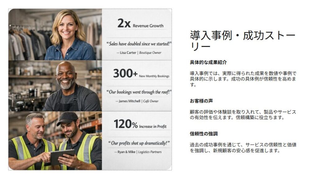 実際に生成されたスライドの一部をご覧ください。