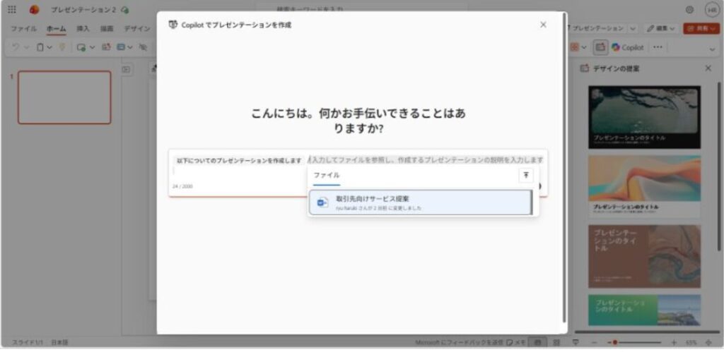 プロンプトによる新規プレゼンの自動生成