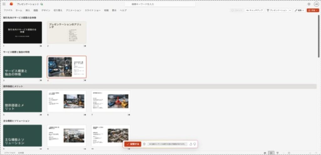 - 生成されたスライドを確認して仕上げる
