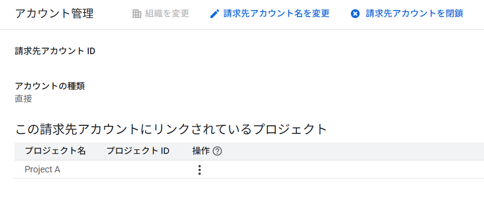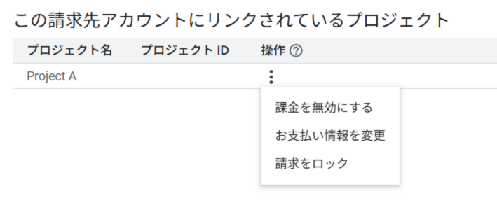 下記のようにプロジェクト名が空欄になれば、課金が無効になっています。