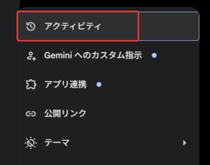 以下の画面に切り替わったら、「Geminiアプリ アクティビティ」を選択します。